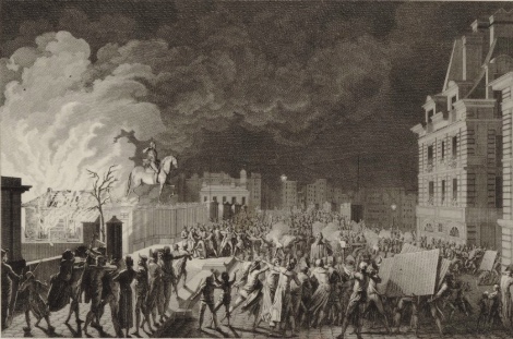Les émeutiers saccagent le bâtiment, et notamment le monument dédié à Louis XVI et ses avocats.