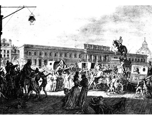 Les charrettes transportant les condamnés traversent la cour de May. Il faut une heure et demi à celles-ci pour rejoindre la place de la Révolution où la guillotine a été spécialement ramenée tant la foule est dense et soulagée de savoir la fin du cauchemar.