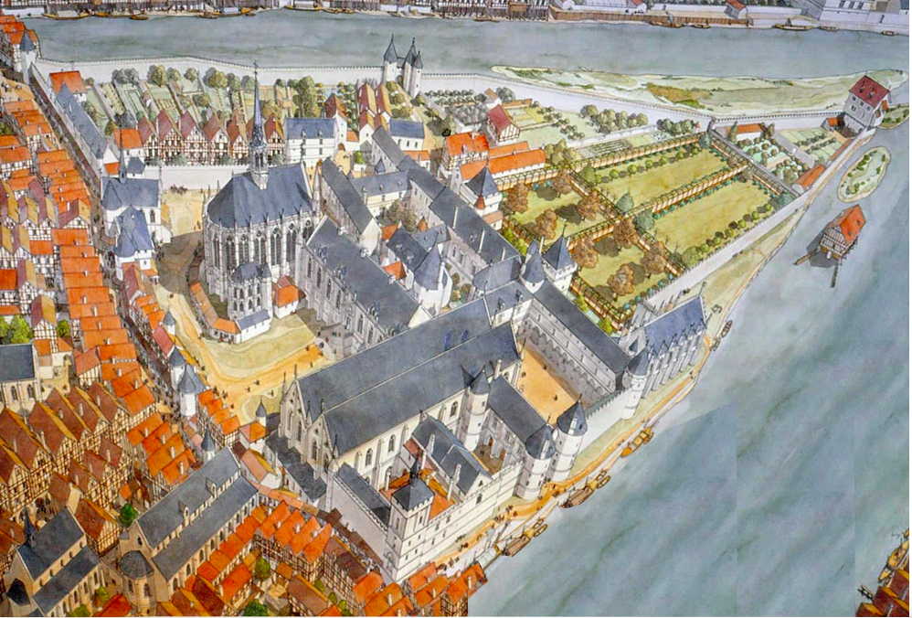 Le pape Alexandre III réside au Palais afin de poser la première pierre de la prochaine cathédrale de la capitale du royaume de France : Notre-Dame de Paris.