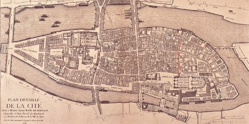 Si la Lutèce d’origine semble avoir été assez étendue, entre au moins l’actuelle Nanterre et Bercy selon les découvertes archéologiques, les invasions des peuples germaniques obligent la population à se réfugier auprès du Palais. L’île alors de neuf hectares est fortifiée en 280.