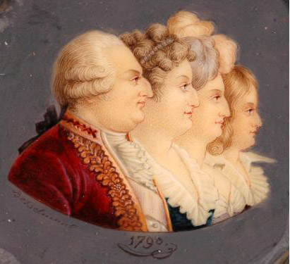 Le Roi et sa suite arrivent à l’École militaire. Un détachement de cavalerie ouvre le cortège. Il y a trois voitures. Dans la première se trouvent le prince de Poix, le marquis de Brézé et le comte de Saint-Priest ; dans la deuxième, les dames d’honneur de la Reine, Mesdames de Tarente, de la Roche-Aymon, de Maillé et de Mackau ; dans la troisième, le Roi, la Reine, leurs deux enfants et Madame Élisabeth. Les trompettes sonnent et les tambours tonnent. Une salve d’artillerie annonce l’arrivée de la famille royale. Le souverain a l’air serein et bienveillant. Marie-Antoinette paraît plus majestueuse encore que d’habitude. La dignité de Son allure, la grâce de Ses enfants et le charme angélique de Madame Élisabeth inspirent un profond respect. Le jeune Dauphin porte l’uniforme de la Garde nationale.
