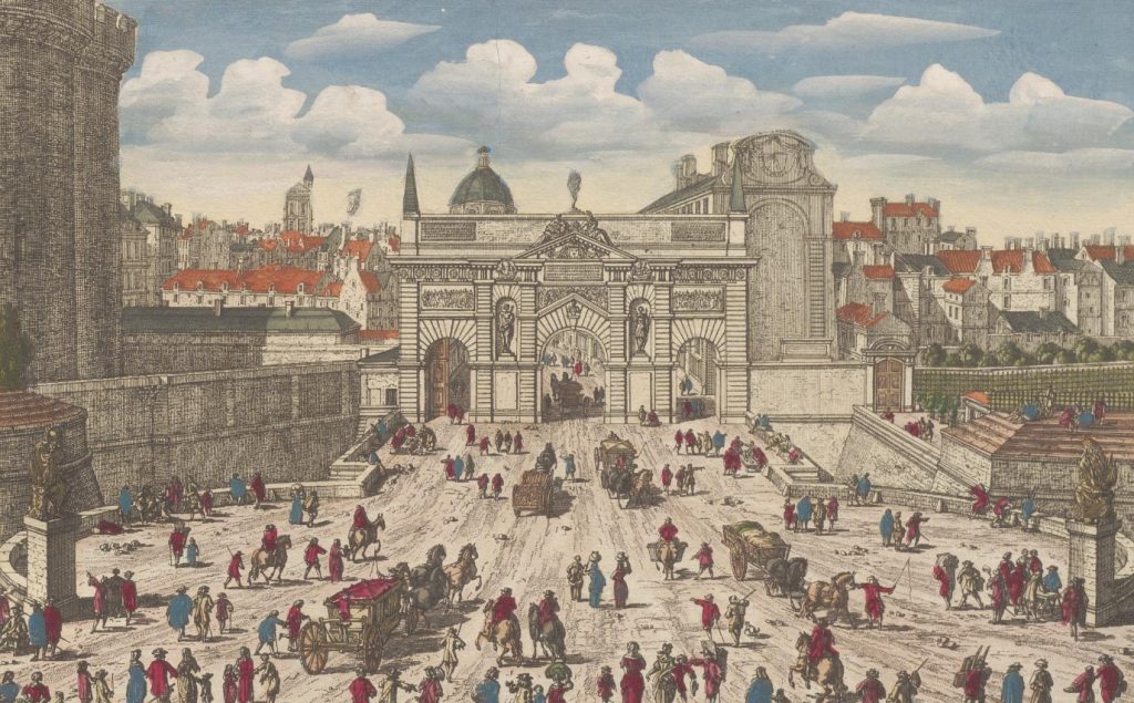 Vue perspective de la porte St Antoine et de la Bastille. N° 51, estampe, éditée par Basset, milieu XVIIIe siècle, Gallica/BnF