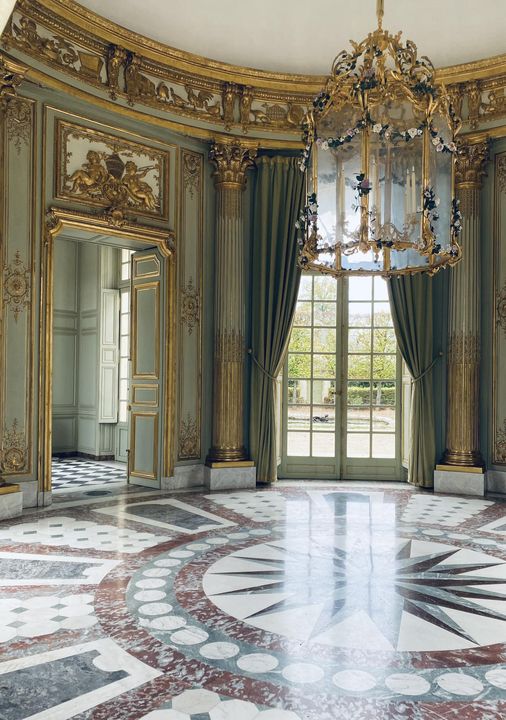 Le sol est couvert de marbre dessinant des motifs divers grâce à différentes couleurs : bleu turquin et vert campan, rouge de Languedoc et griotte d’Italie, et blanc veiné. Sous l’Ancien Régime, il est recouvert en hiver d’un tapis de la Manufacture de la Savonnerie s’accordant parfaitement à la forme circulaire et réalisé par Jean-Baptiste Chevillion. Ce tapis est livré en 1751 mais disparaît à la Révolution.