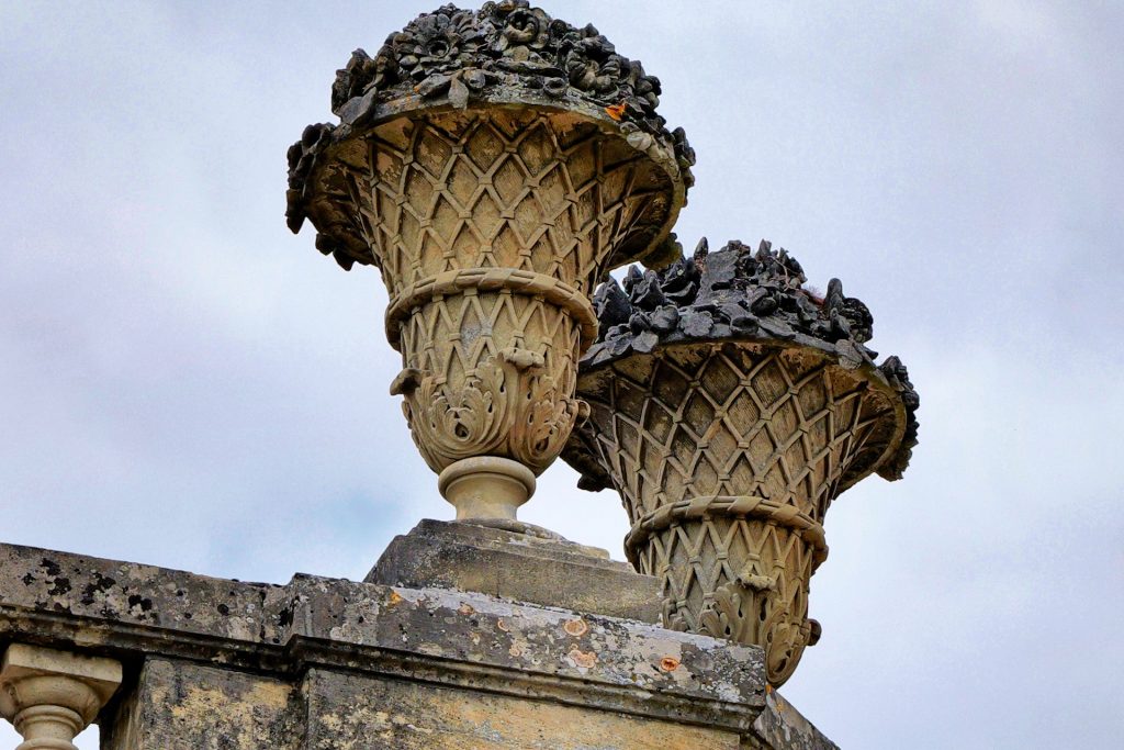 Alors que l’on installe ces statuettes en 1967, il est décidé de restituer les seize corbeilles de fleurs disparues. Aucun modèle n’ayant été conservé, le sculpteur Pascal Soullard s’inspire des dessins de « l’album de Modène ». Les fleurs des vases, à l’origine formées de plomb, sont réalisées en pierre.