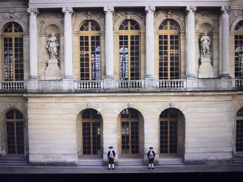 Louis-Auguste regarde la scène avec un télescope. De l’appartement de madame du Barry ! Alors certes c’est bien ce que fera plus tard le futur Louis XVI, à observer les arrivants à Versailles. Mais quand il aura réquisitionné ces pièces pour son usage devenu roi ! Une quinzaine de courtisans se presse sur le balcon de la Chambre du Roi à l’observer eux aussi. Ce qui paraît peu probable puisqu’il s’agit d’un balcon éminemment symbolique. Qui connaîtra un dernier moment de gloire le 6 octobre 1789. Il n’était certainement pas utilisé comme poste d’observation pour des courtisans curieux. Sauf sur invitation du Roi. Qui serait donc forcément présent aussi. On imagine mal de simples courtisans sur le fameux balcon de Buckingham Palace uniquement réservé aux grands moments de la famille royale britannique !