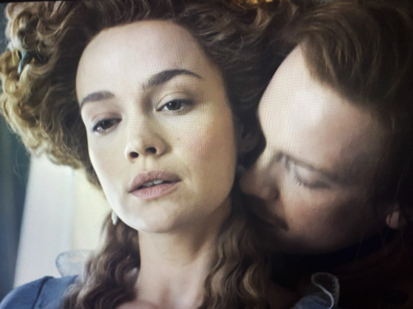 Artois disparaît : c’est Provence qui devient un beau-frère un peu trop séduisant, qui se love dans les bras de madame du Barry ( brune ! ) dont la série fait une Pompadour assise au bureau du Roi , doublée d’une Merteuil : elle se propose de préparer la Dauphine à Sa nuit de noces et l’embrasse sur les lèvres pour l’initier à la séduction.