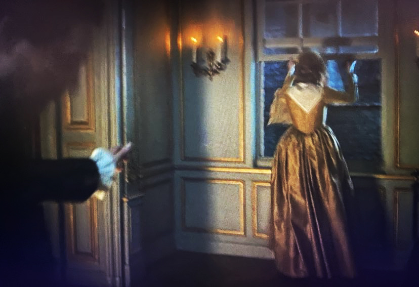 On se demande aussi comment est-il possible que toute la famille royale s’en aille et que pendant ce temps, Marie-Antoinette reste avec la princesse de Lamballe à la fenêtre ? Tout le monde s’en va pourtant pour célébrer son mariage ! La principale intéressée ne bouge pas. Elle fera le voyage avec qui ? En toute logique, c’est soit avec le Roi et son mari, soit avec Mesdames. Ou tous ensemble dans la même voiture. Certainement pas avec la princesse de Lamballe.