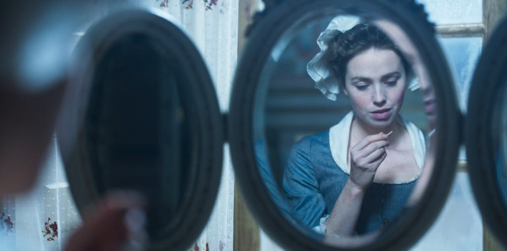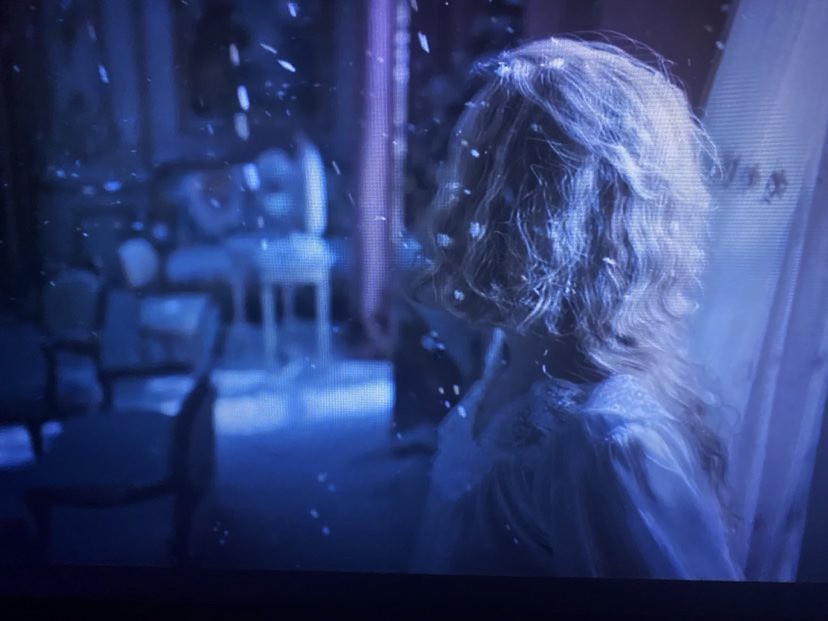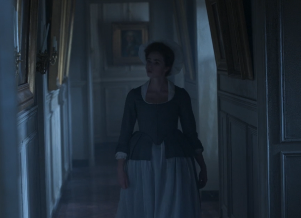 0’35 : L’impression de cauchemar s’accentue. Marie-Antoinette regarde le plafond peint représentant Neptune. La peinture bouge et des gouttes de sang en tombent sur sa main. Nous voilà dans un Marie-Antoinette qui se veut fantastique, certainement pour concurrencer la série sur la Révolution française qui a si bien fonctionné sur Netflix.