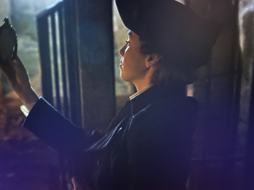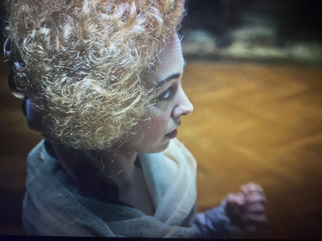 Reconnaissons que l’actrice a une merveilleuse chevelure dont la couleur ne devait pas être éloignée de l’originale. Dommage pour les yeux marrons que nous verrons très souvent en gros plan, afin d’insister sur ce regard de biche apeurée, ou plutôt ici de faon perdu.