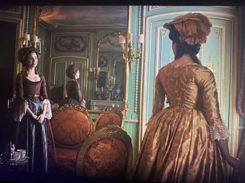Versailles dans cette série est dépourvu de règles, d’étiquette, et par conséquent l’insistance de la série à nous montrer que Marie-Antoinette se sent « piégée » et « altérée » par Versailles n’a pas beaucoup de poids. Les décors, sont moches. On savait que ce serait un remake du film de Coppola mais à ce point : le cabinet de la Méridienne est déjà existant en 1770 …. alors qu’il est construit en 1781 pendant la seconde grossesse de Marie-Antoinette.