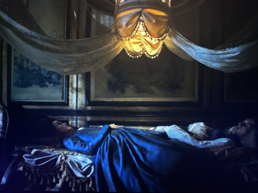 Le Roi et la Reine, allongés tête bêche sur le lit de Louis-Joseph épiloguent leur mariage, lors duquel un feu d’artifice avait tué des dizaines de spectateurs, comme une marque de fatalité dans l’union qui se faisait-là.