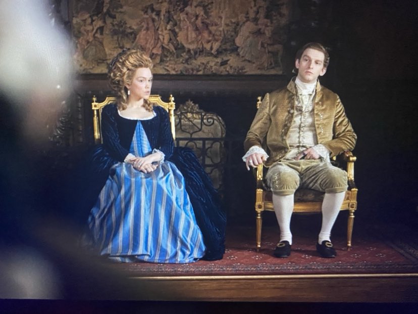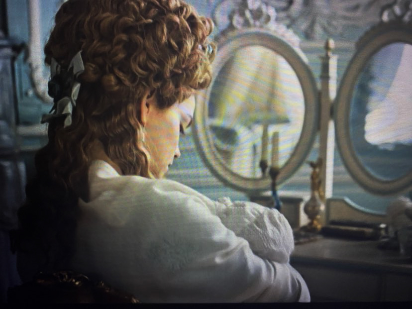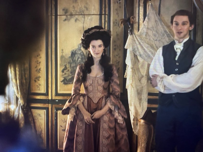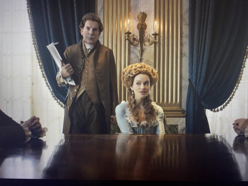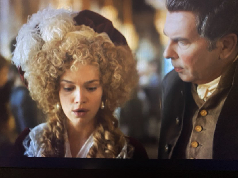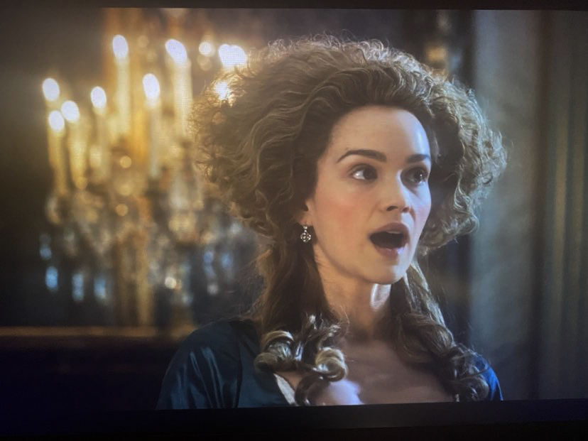 Marie-Antoinette pose alors la fameuse question à savoir qui est cette dame. Normalement à la comtesse de Noailles. Car pour cette rencontre, elles sont ensemble à une table de jeu (pas pour dîner !), non plus à Compiègne mais à La Muette. Le comte de Provence, bien plus entendu sur les affaires féminines qu’il ne l’a été en réalité, lui explique et la réponse ingénue de la jeune fille se retrouve carrément plongée dans le sordide le plus complet ici.