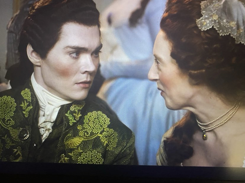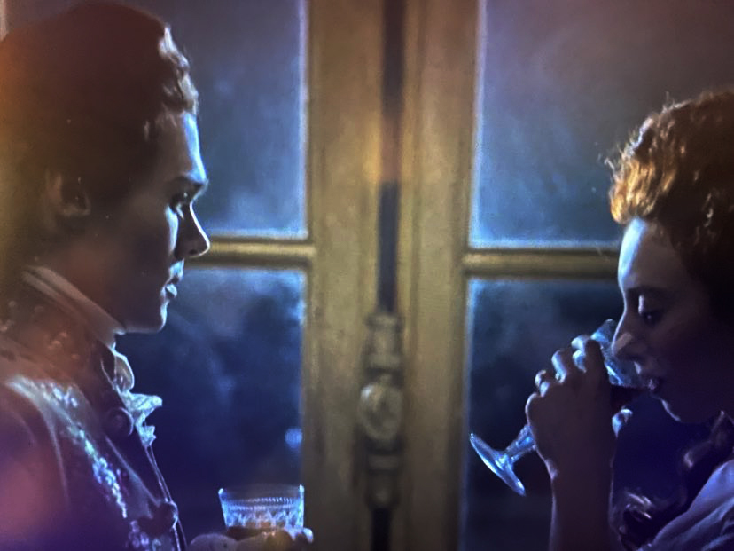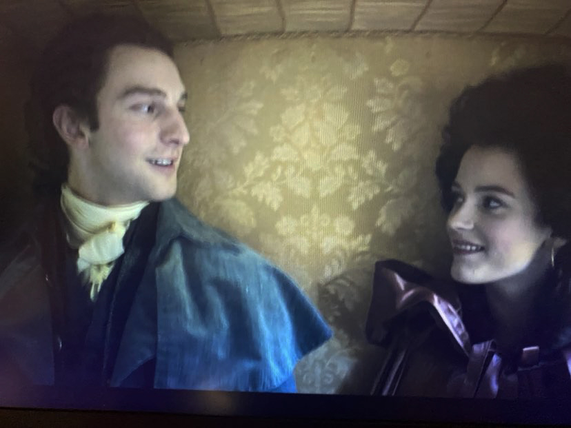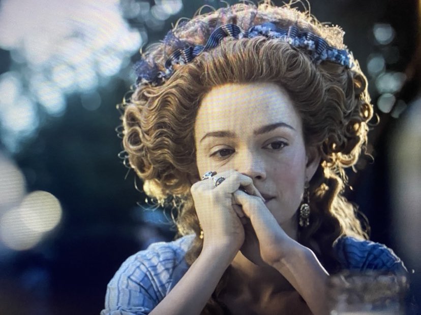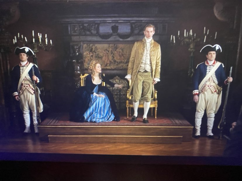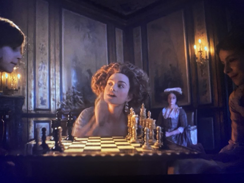 Marie-Antoinette pose alors la fameuse question à savoir qui est cette dame. Normalement à la comtesse de Noailles. Car pour cette rencontre, elles sont ensemble à une table de jeu (pas pour dîner !), non plus à Compiègne mais à La Muette. Le comte de Provence, bien plus entendu sur les affaires féminines qu’il ne l’a été en réalité, lui explique et la réponse ingénue de la jeune fille se retrouve carrément plongée dans le sordide le plus complet ici.