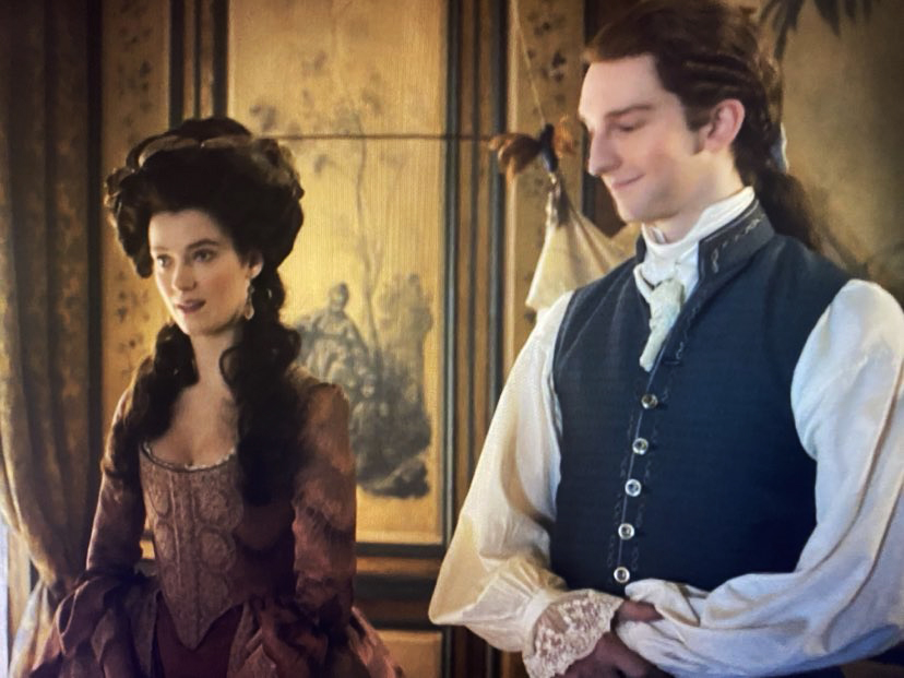 Au fond de la cour l’attend l’ambassadeur Mercy qui lui présente le duc de Choiseul. Elle avait pourtant normalement rencontré l’artisan de son mariage avant même la famille royale. Il est vrai que le trajet entre Strasbourg et Compiègne vu par la série ne s’y prêtait guère.