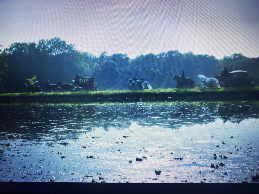 Il ne leur manque plus qu’une machette. La suite française est encore plus réduite que l’autrichienne. Alors qu’en plus celle-ci en grande partie l’a accompagnée et est restée à la Cour de France encore un bon mois. Non, nous avons là quatre promeneurs qui ont l’air de tout sauf d’une grande princesse censée épouser l’héritier du trône de France et de dignitaires nombreux et prestigieux des deux cours les plus importantes d’Europe. Une grille d’un parc qui semble abandonné depuis longtemps est ouverte, sans gardes, rien qui n’indique que nous pénétrons dans une résidence royale.