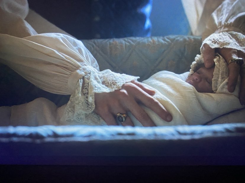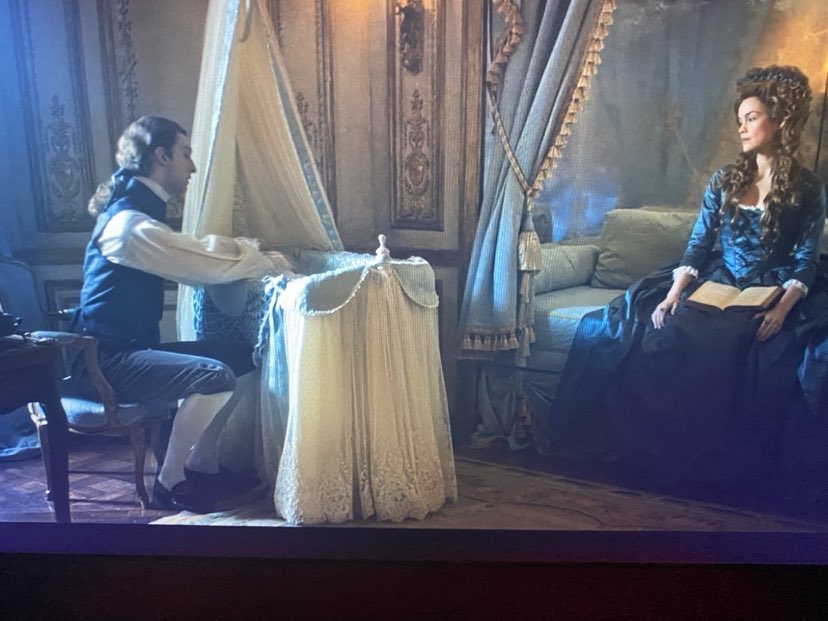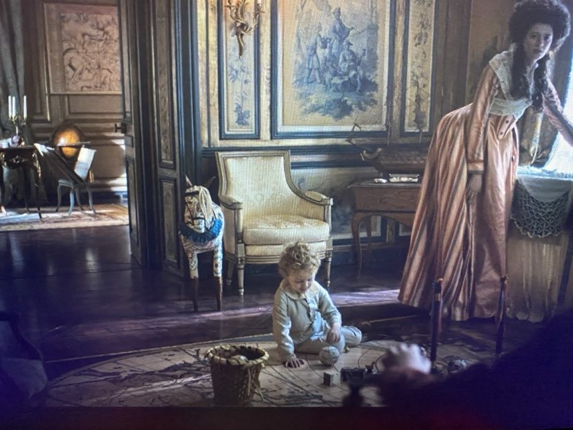 La princesse de Lamballe s’occupe des enfants dans le cabinet doré qui semble la salle de jeux, elle s’aperçoit de la mort de la petite Madame Sophie, que madame Le Brun efface donc du portrait… De retour d’Angleterre, Fersen explique qu’en Suède le cercueil d’un enfant est effectué par son père…. La série n’hésite pas à rappeler encore et encore la thèse qu’elle défend.