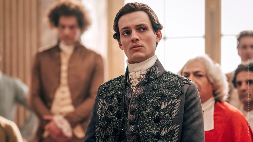 Mais le plaisir procuré par la qualité de la photographie se dissipe bien vite. À peine une demi-heure après le début du premier épisode, Marie-Antoinette, toujours incarnée par la ravissante Emilia Schüle, débarque dans une orgie ! La souveraine marche entre les corps nus enlacés, un léger sourire aux lèvres… Cette partie fine est soi-disant organisée par la nouvelle favorite de la reine, Yolande de Polignac, qui deviendra bientôt duchesse. Parmi les invités, l’économiste Charles-Alexandre de Calonne, futur contrôleur des finances du roi, apparaît dépoitraillé, sirotant un verre de vin. Cette séquence est à la fois grossière, en dehors de la réalité historique et sans le moindre intérêt pour le déroulement de l’intrigue.