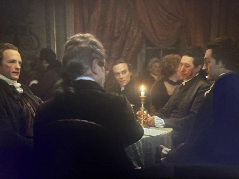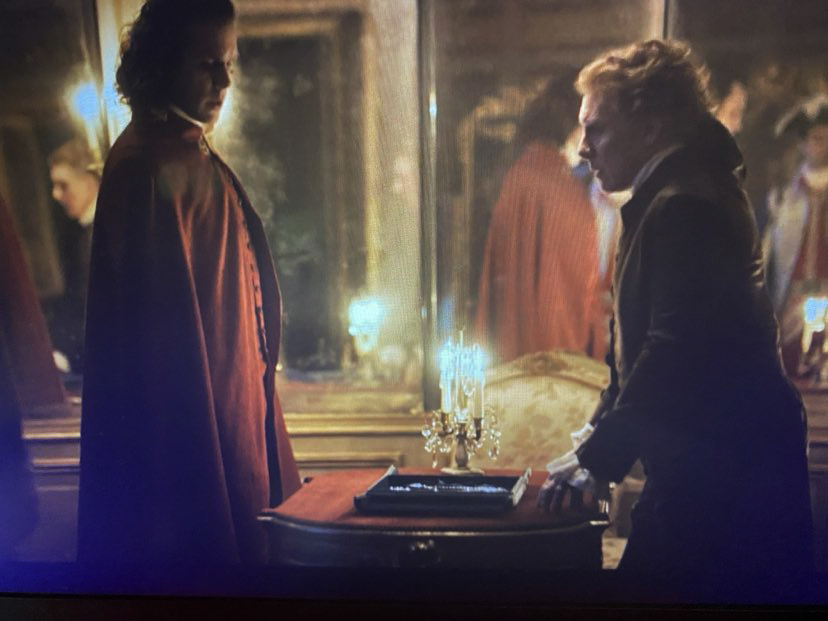 Au Palais-Royal, par le biais du chevalier de Saint-George toujours présent, on vante l’abolition de l’esclavage. C’est alors que paraît Fersen, « la raison pour laquelle la Reine apprend le suédois », selon Orléans qui se fait giffler par le comte. Provence, qui est là, toujours dans son habit vert, constate la posture peu royale de son cousin qui se console d’être vu par le public comme l’avenir (les scénaristes se réfèrent à la monarchie de juillet…. c’est très scientifique comme manoeuvre….), ils évoquent même les élections présidentielles à venir…