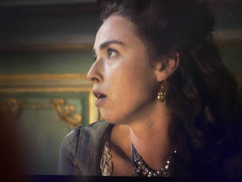 Puis c’est le tour de la princesse de Lamballe. Nous sommes donc encore plus étonnés de l’absence des autres princes du sang : comment aurait-elle pu venir aux noces royales, sans son beau-père le duc de Penthièvre ? Et encore plus absurde : le duc de Chartres paraît célibataire alors qu’il est déjà marié à la fille du duc de Penthièvre. L’absence de la duchesse de Chartres interdit de fait la présence de sa belle-soeur, la princesse de Lamballe. Comme si cela ne suffisait pas dans l’absurde, Louis XV s’empresse de la présenter comme «un membre italien de notre famille.» Elle est en effet membre de la maison cadette des Savoie-Carignan, information qui aurait amplement suffi. Par la suite, Louis XV insiste lourdement sur ces origines italiennes. Alors que sa propre mère est aussi une princesse savoyarde ! Un rappel qui aurait été pertinent mais qui a été jugé inutile. Non autant rester dans les clichés et les gros traits passés à la brosse : la princesse de Lamballe est italienne donc forcément brune. Or sa mère était allemande et blonde, issue de la famille des meilleures amies d’enfance de Marie-Antoinette. Un détail qui a paru aussi inutile d’indiquer. Et qui pourtant a forcément eu son importance dans le début de leur amitié. Celle-ci est pour une fois agréablement montrée. La princesse de Lamballe est la seule pour l’instant qui semble apparaître comme un être humain dans ce festival de personnages cauchemardesques.