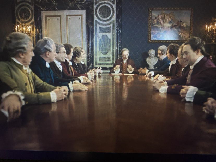 Le Roi est confronté aux Notables auxquels il ment en évoquant les bénéfices fiscaux du royaume (douze millions de livres…. alors que le déficit est de six milliards à cause de la guerre d’Amérique), c’est alors que Provence demande à consulter les comptes qui ont été maquillés par Necker. De retour dans son bureau, le Roi traite son frère de salaud. En apprenant l’ampleur de la dette, la Reine déplore que son mari l’ait laissée acheter le château de Saint-Cloud.