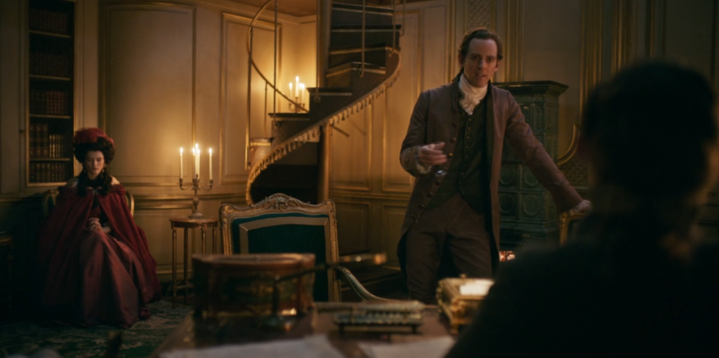 La scène du voyage se termine avec le comte de Provence qui fait mine de viser la Dauphine d’un pistolet imaginaire. Certes, il n’était pas à son avantage qu’elle donne un héritier qui le rétrograderait dans la succession, mais il n’avait certainement pas des idées de meurtre à son encontre. Ni contre son aîné. En tout cas, pas en 1770. Nous voilà devant des intrigues de cour d’une platitude affligeante qui nous font grandement regretté une fois de plus Game of Thrones.