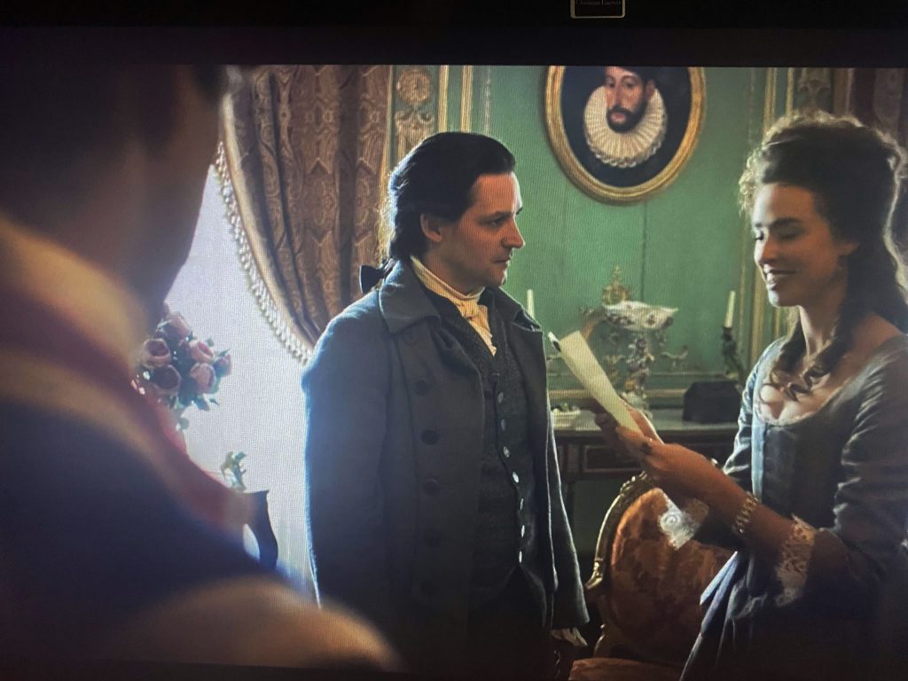 C’est autour du duc de Chartres d’être présenté. On se demande alors pourquoi son père le duc d’Orléans est absent. Ou d’autres princes du sang. Surtout ne pas surchargé le public ! Là encore, pas de chance pour Marie-Antoinette décidément, ce prince est beau et galant. «Je suis un cousin.» Marie-Antoinette a eu le temps à Vienne de le savoir, d’autant qu’il s’agit autant de son cousin que celui de son mari. Mais une fois de plus, on cherche à tout simplifier pour le public. Quand on voit la complexité des généalogies de Game of Thrones, quelle insulte de réduire celles des familles historiques ! Pas besoin d’aller trop loin pour savoir d’avance que cette série n’aura pas le même succès !